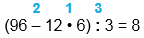 1) 12 • 6 = 72 2) 96 - 72 = 24 3) 24 : 3 = 8 |